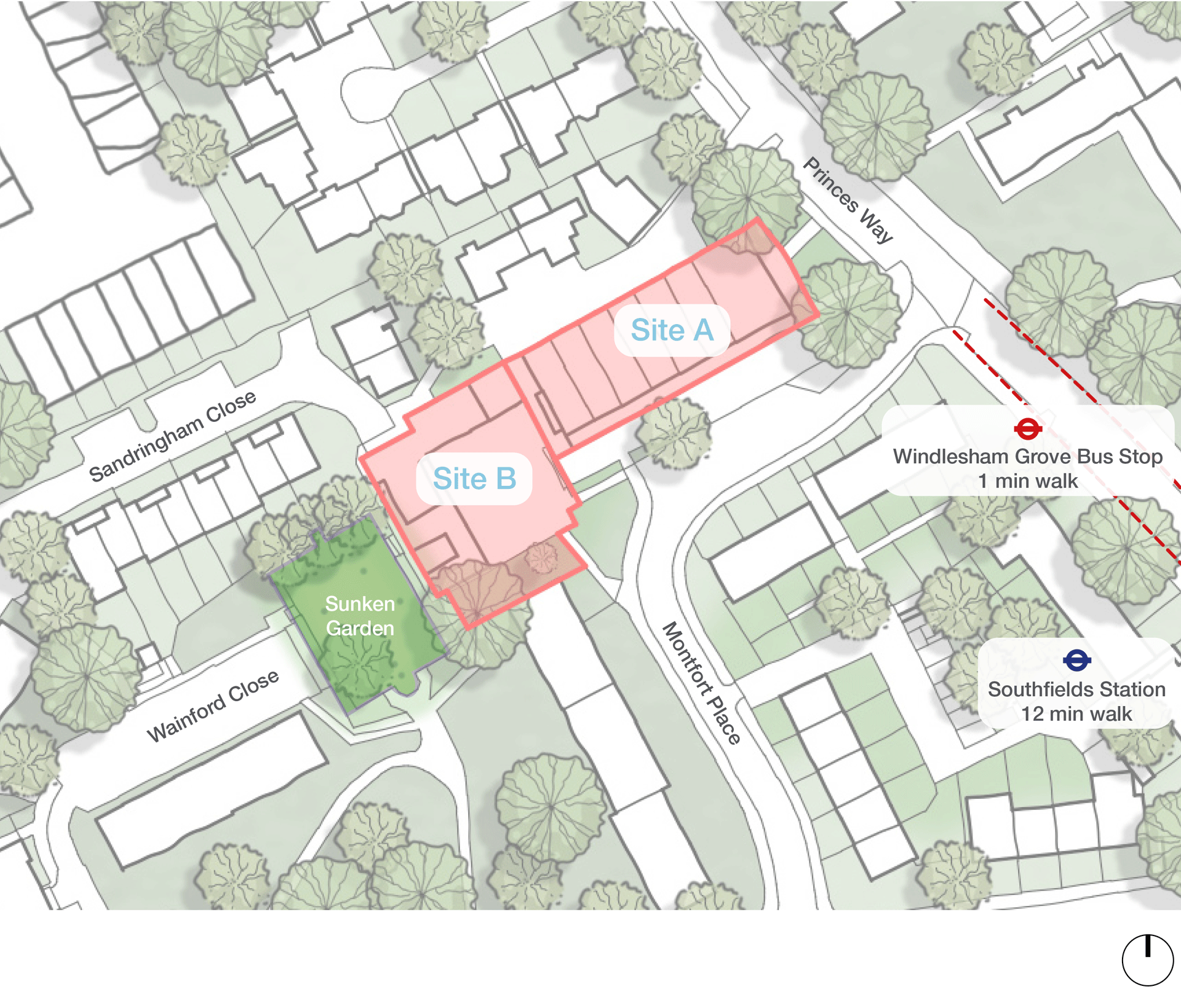 Site A and Site B are located centrally on the Ackroydon Estate on Montfort Place, which is accessed from Princes Way.